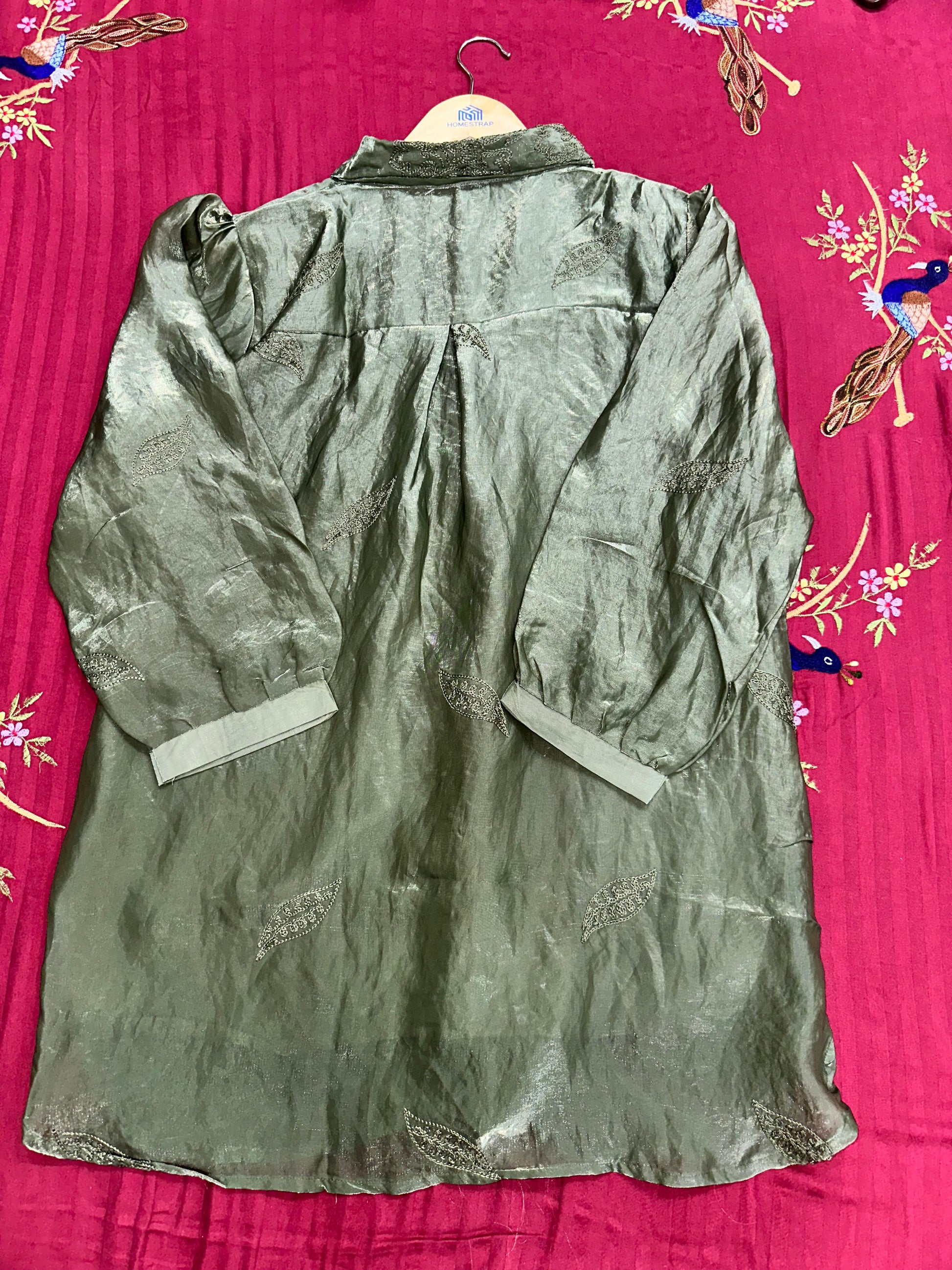 Elevate your everyday style with this beautifully embroidered cord set crafted in a soft, silk-textured fabric. Designed with a collared shirt and matching pants, it offers the perfect mix of elegance and comfort. Ideal for festive events, casual outings, or statement daywear — this set adds effortless charm to any occasion.