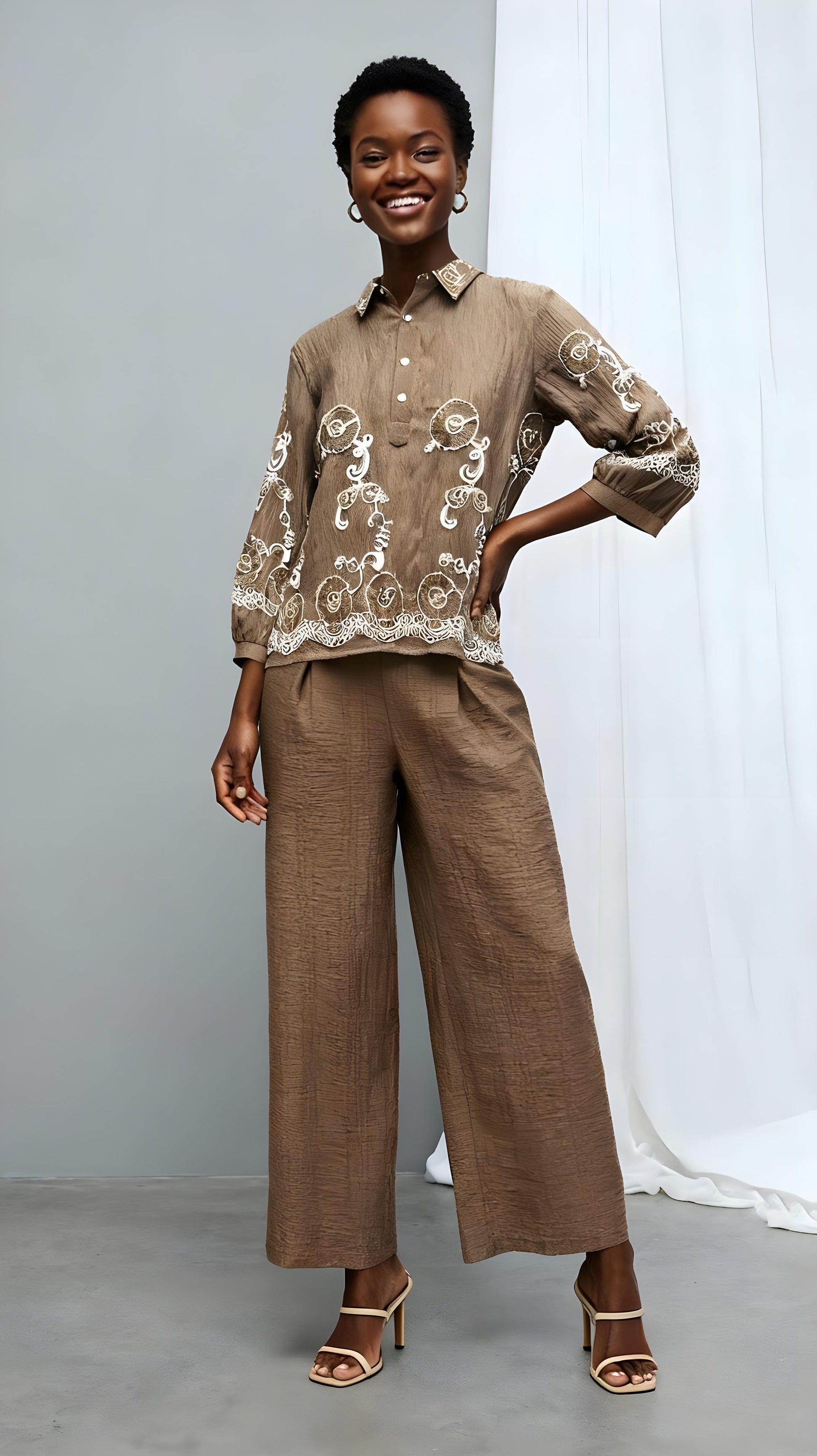 The Tanira Coord Set blends earthy elegance with contemporary charm. Crafted in textured fabric and detailed with delicate thread embroidery, it offers effortless sophistication for both day and evening wear.